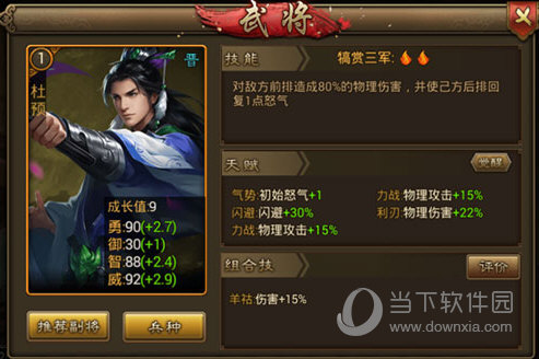 两位伐吴大将走到一起就是要搞事情哦!羊祜技能对敌方全体造成240%的计策伤害,令自身暴击率提升至100%,持续2回合,这是清屏的节奏啊!就算有一两个侥幸存活的,两回合的暴击也让你躲得过初一躲不过十五。杜预犒赏三军对敌方前排造成伤害,并给自家后排加怒,五怒才释放技能的羊祜会爱死他吧!
